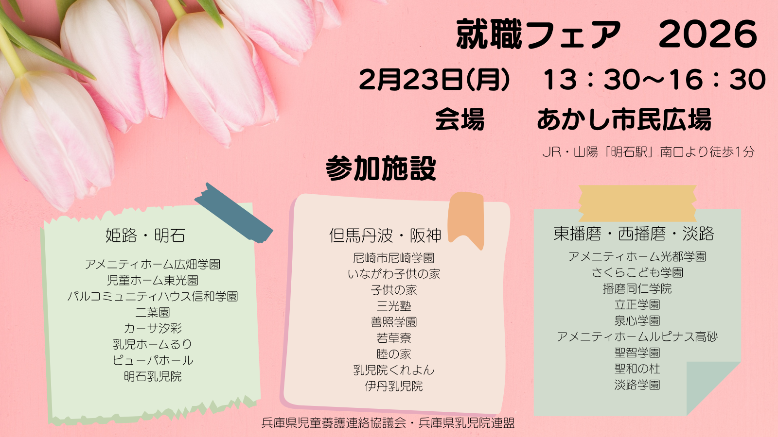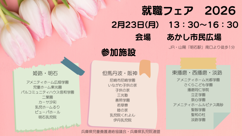 令和8年2月23日(月)あかし市民広場で開催されます、就職フェアへの参加施設が決まりました♪